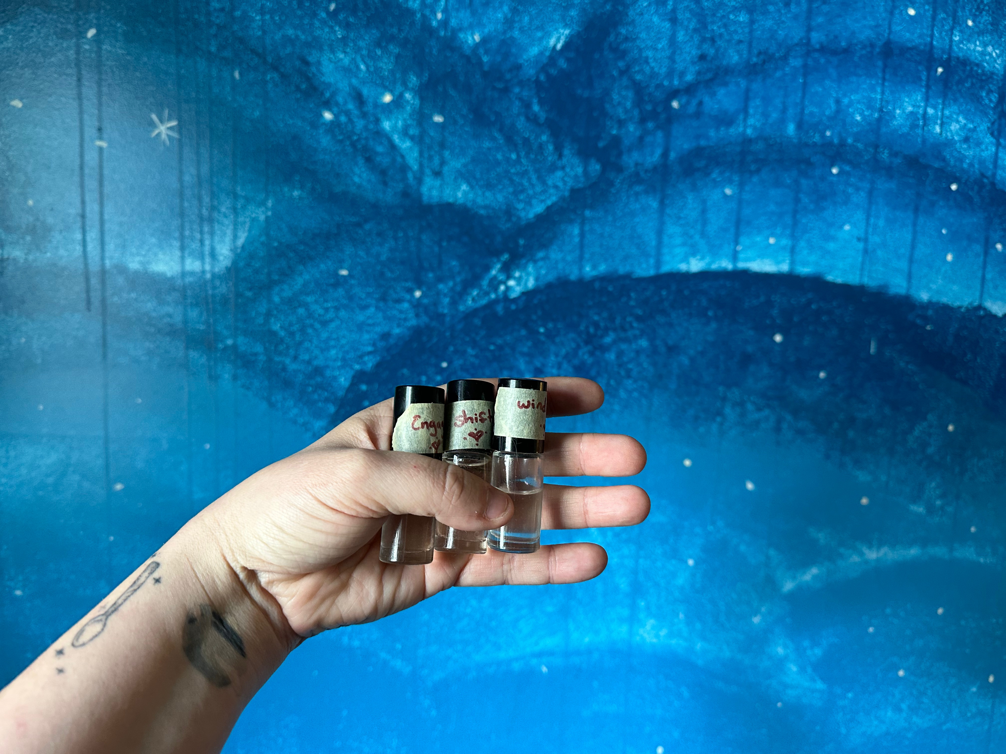 Shifting happens when I move towards other aspects of my writing practice like editing, writing footnotes, etc. You’ll notice I use all three scents here: A signal to my body that I’m still writing, but now adding to or transforming that generative work into a more polished form.