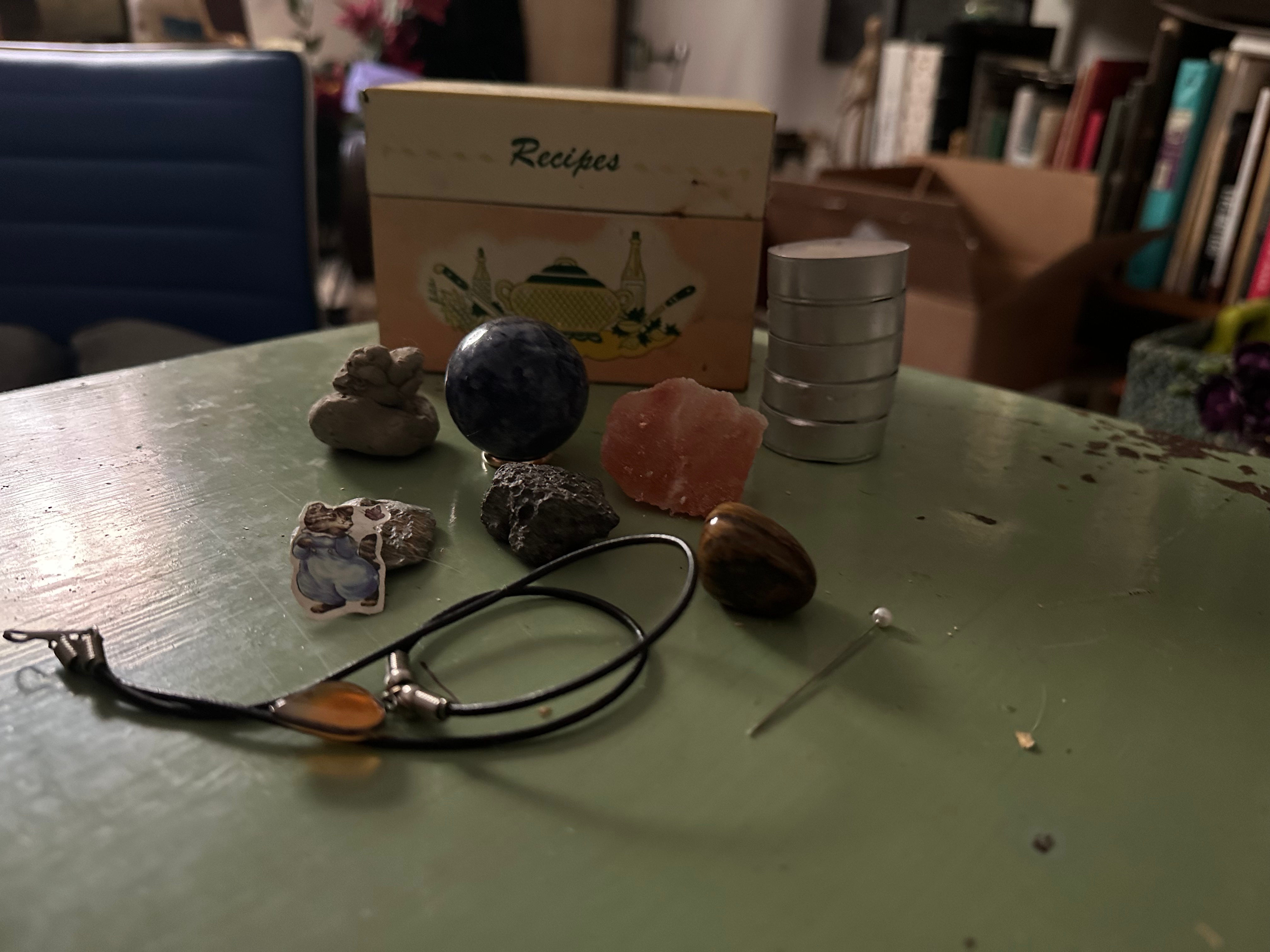 Rocks: Some nice polished stones, yes, but also rocks found out in the wild. One from my first artist residency I ever went on to Hambidge (where I’m hosting my very own workshop next month!), and the other from my wedding trip to Denmark, which reminds me of my beloved pet rock from when I was a kid (also a pumice-y stone, but more round).